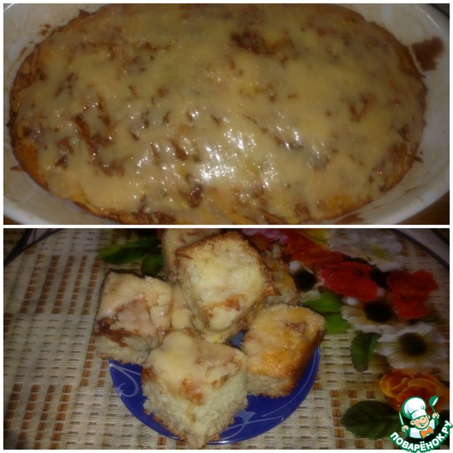 2. Карамельный соус вообще добил меня - в горячем виде было все прекрасно, но после остывания верхняя часть пирога стала непробиваемая.. Пришлось весь этот леденец снимать... Тото я не увидел "соуса", на фотографиях пирога автора.