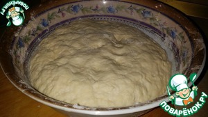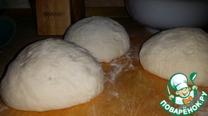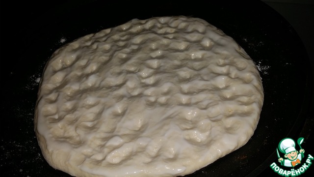 После раскатываем кружочек, сверху мажем кефиром, делаем пальцами углубления на тесте и ставим в духовку при 220 градусов на 20 минут.