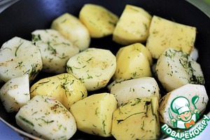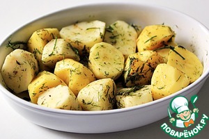 Тщательно перемешать картофель с травами, приправить солью и перцем. -