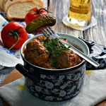 Но мне тааак понравились тефтельки!!! Соус просто бомба!! Бомбище!!!! Буду обязательно готовить! Главное соуса готовить побольше, так как именно он определяет вкус! На одну грудку на кости (с кости, естественно, сняла) и прочих ингридиентов налепила 22 тефтельки. На соус взяла банку Балтики 3 (всю использовала), огурцов стоит не жалеть - именно они придают соусу контрастность вкуса, так же чуть-чуть плеснула рассола. Томатная паста тоже даёт свой вкус (думаю, томатный сок или даже протертые томаты упростят вкус).