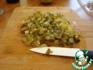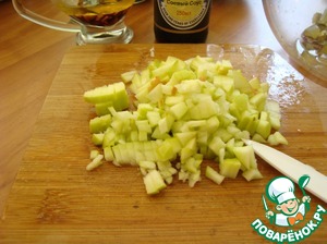 Яблоко мелко нарезала. Яблоко можно взять любое. Сладкое даже больше в винегрете нравится. Это по вкусу.