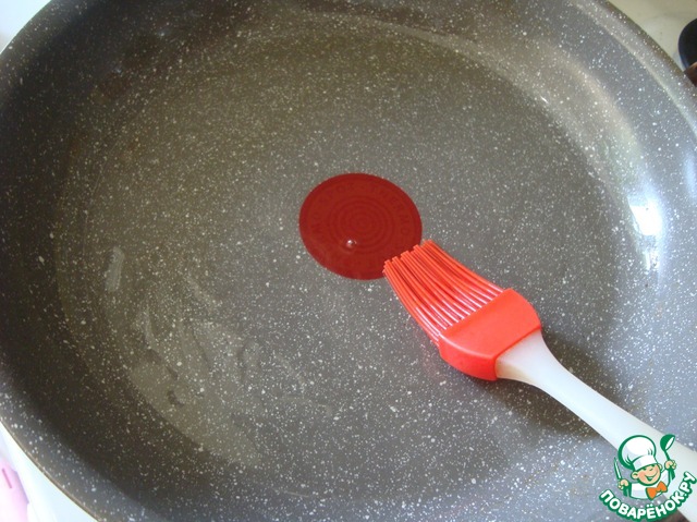 Берём сковороду. Я взяла такую, где мне потребуется минимум масла. Разогрела её и подмазала.