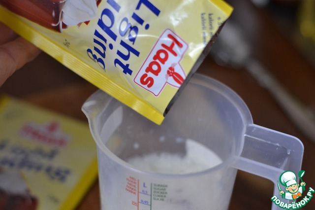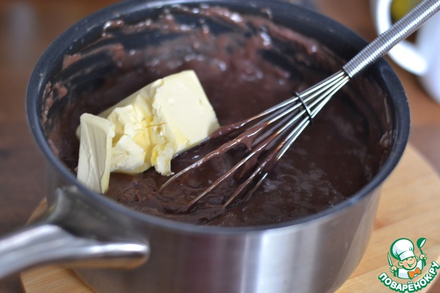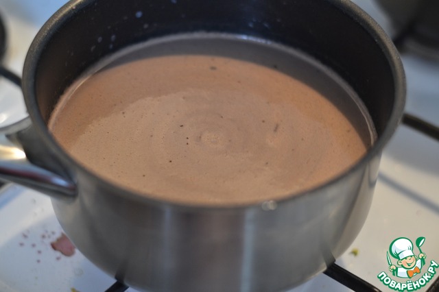 В оставшихся 250 граммах холодного молока размешаем шоколадный пудинг продукции"Нааs". -