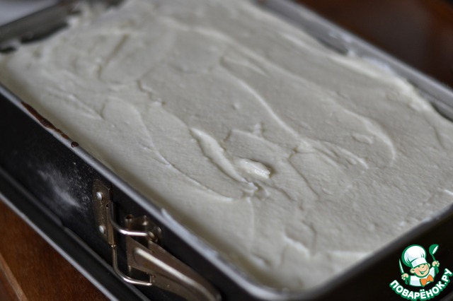 Форму 28 х 22 (у меня с разъемными краями) смазать подсолнечным маслом и посыпать мукой.