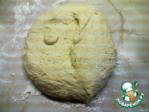 Когда уже будет тяжело взбивать тесто миксером, выложить его на стол (предварительно посыпанный мукой) и вымешивать, добавляя оставшуюся муку до состояния эластичности теста.