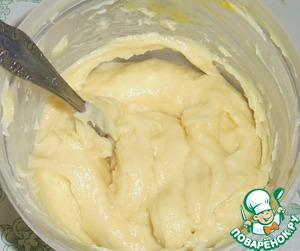 Как только жидкость станет однородная, то высыпать муку и замесить тесто. Остудить тесто до 35 градусов.