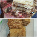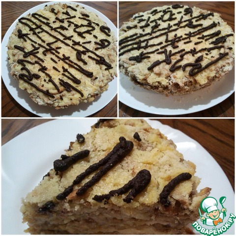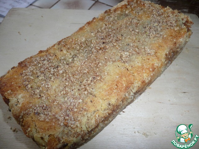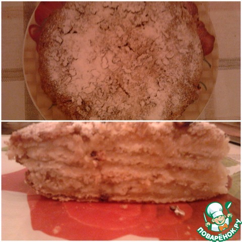 Выкладывать слоями, пока не закончатся ингредиенты. Последний слой должен быть мучным.