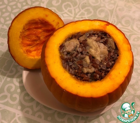 Рецепт «Тыква, фаршированная рисом и куриным филе»: