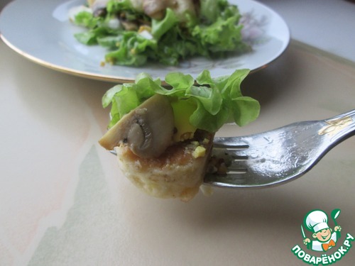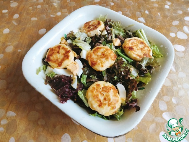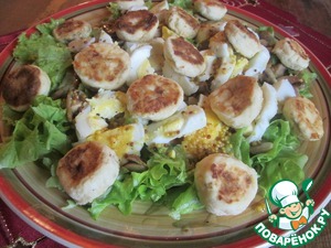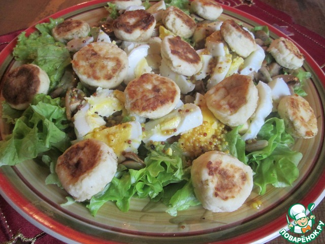 Рецепт «Салат с сырниками, грибами и яйцами»: