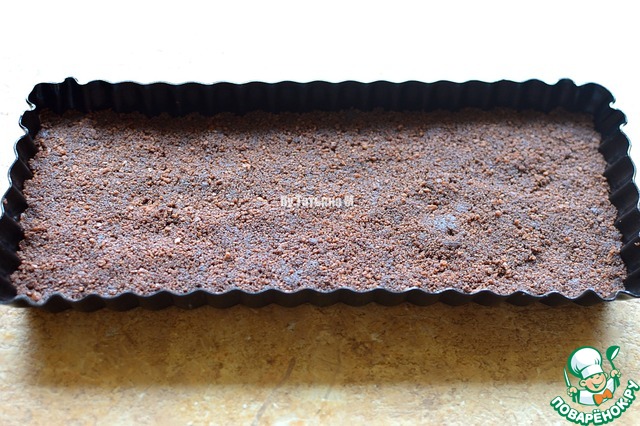 Уложить основу в форму со съемными бортами, плотно утрамбовать и убрать в холодильник минимум на 30 минут;