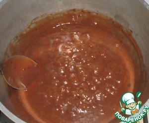Варить до густого состояния. Варится масса около 15 минут. Масса должна получится густой и немного отставать от стенок кастрюли.