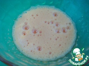 Добавить в остывшую моолочно-сырную массу и хорошо взбить венчиком до объединения смеси.