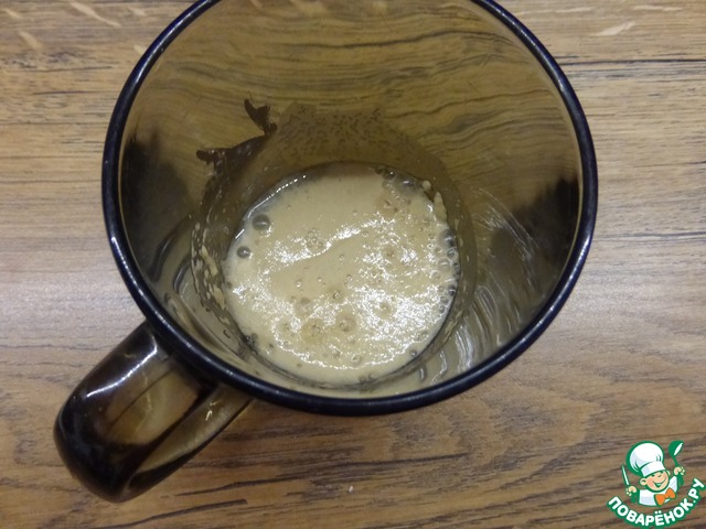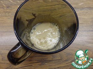 Берем 1 ч. л. дрожжей (у меня был красный сафф-момент), 1 ч. л. сахара, заливаемм 2 ст. л. теплой воды. Даем дрожжам вспениться. -