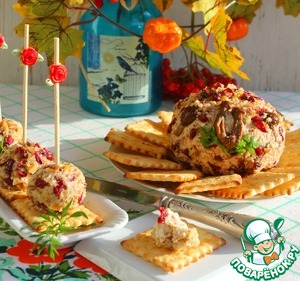 Можно сделать порционно - катаем влажными руками шарики и обваливаем в смеси орехов и вяленой клюквы.