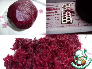я сама не люблю свеклу на терке,поэтому ее и делала на "китайской",меньше сока выделяется