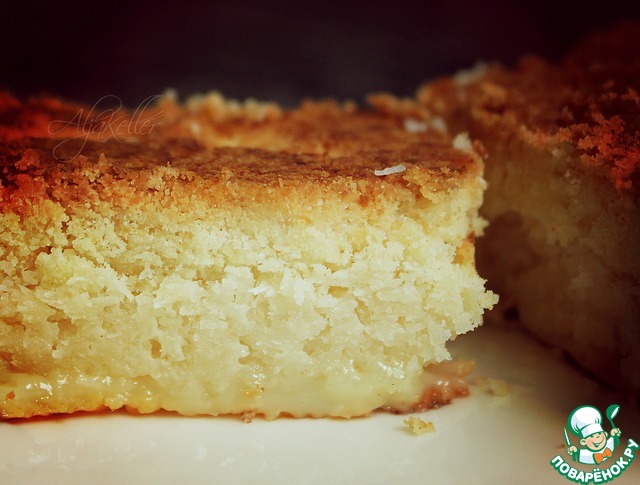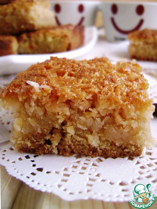 На фото сгущёнка с кокосом снизу, тесто сверху.