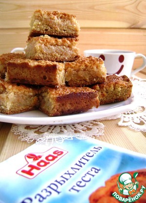 А вот по поводу сыпучести...ну не знаю, что и сказать, я пекла пирог первый раз по рецепту из журнальчика "Очень вкусно -ели сами". Вот как написано было- так и сделала, заменив только соду на разрыхлитель и сахар на пудру.