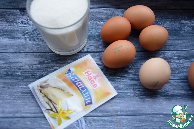 Что ж, давайте его приготовим : Для бисквита нам нужно 6 небольших (С3 категория) или 4 (С0) яйца, взбить с сахаром и ванилином до белой воздушной массы около 5 минут. -