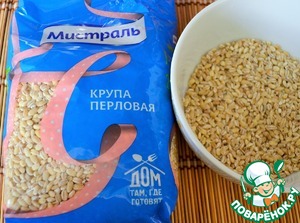 Отмерить перловую крупу и залить кипятком, отставить. Перловая крупа от ТМ Мистраль - чистая, крупная, зернышко к зернышку.