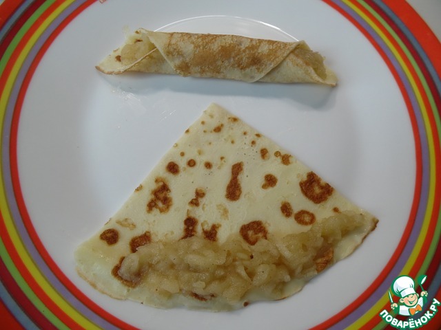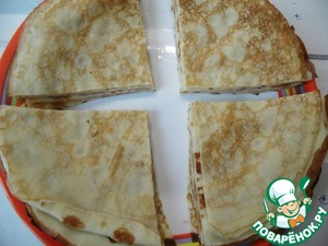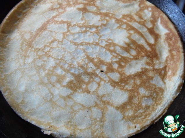На хорошо прогретой сковородке, смазанной растительным маслом испечь тонкие блинчики.