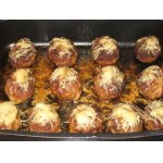 Фарш солим по вкусу. Я обязательно добавляю в процессе приготовления фарша много лука для сочности. Если у вас фарш суховат, можно добавить чуть-чуть воды.