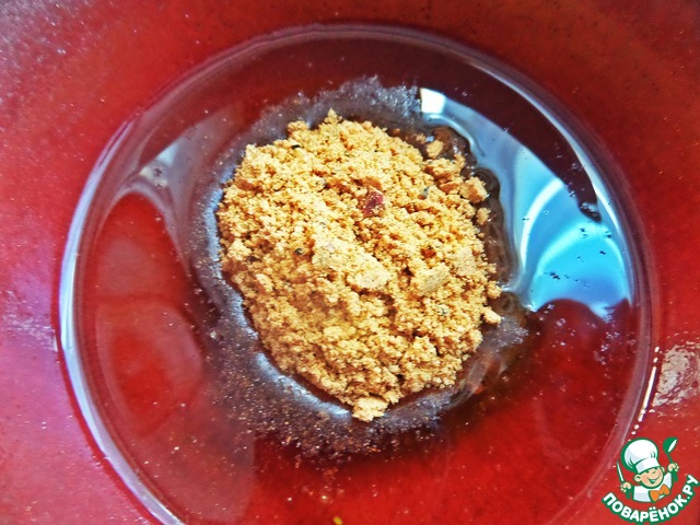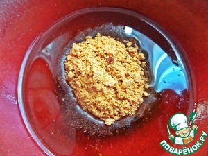 В оливковое масло высыпать пакетик приправ для запекания курицы.