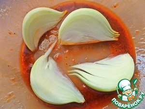 Луковицы нарезать дольками на манер яблока.