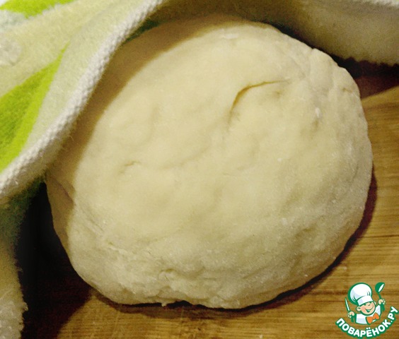 Получается мягкое тесто. Прикрыть его полотенцем и оставить отдыхать, пока готовите начинку.