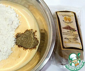 Далее добавить 2/3 части муки и начать замешивать тесто. Я в тесто добавляю еще 1ч. л. муки пищевой из жмыха семян расторопши, с ней получается еще полезнее. Остальную часть муки вводим постепенно, т. к. мука у всех разная и может понадобиться либо больше, либо меньше (ориентируйтесь по своей муке). Еще кол-во муки зависит от сочности Вашей тыквы.