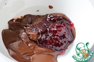 Шоколад растопить любым удобным вам способом, добавить к нему джем (у меня малиновый) и размешать.