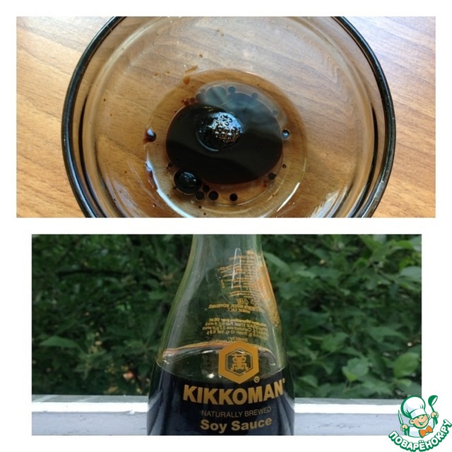 • Сделать заправку к салату: в пиале смешать соевый соус, бальзамический уксус и масло. Перемешать, влить в салат.