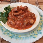 Ирина, вот и мой отчет. Готовила из свинины и томатного сока (вернее, томат.паста, разведенная водой). Томила чуть менее часа. Очень вкусно! Спасибо