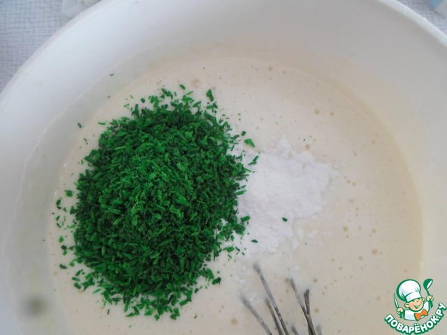 Потом вводим кокосовую стружку, разрыхлитель и ванилин.