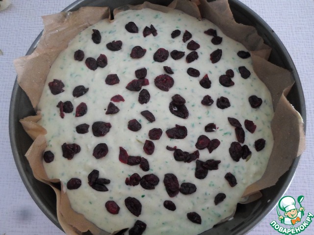 Выливаем тесто в форму для выпечки, сверху посыпаем сушеным барбарисом. Выпекаем в предварительно разогретой до 180 градусов духовке 30-40 минут (до сухой спички).