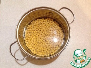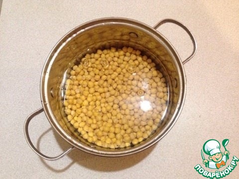 • Замачиваем нут на ночь, а лучше на сутки, залив его водой так, чтобы покрывала хотя бы на сантиметр сверху. Если есть время, и возможность сделать это на сутки (допустим вечером поставили), то утром меняем воду.