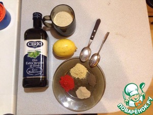 • Обжаренный кунжут высыпаем в емкость, выдавливаем из лимона сок.