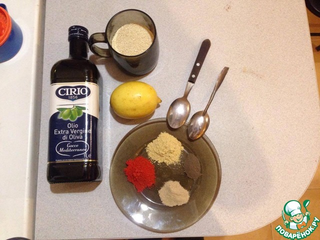 • Готовимся к приготовлению тахинной (кунжутной) пасты, которая и есть основной элемент, которым мы будем заправлять нутовое пюре. Кунжут, оливковое масло, горячая кипяченая вода, специи, соль.
