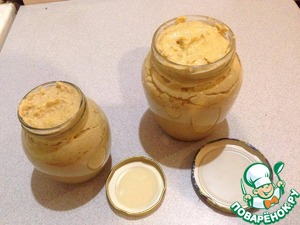 • Раскладываем по банкам, на фото они емкостью 0,35 и 0,75. то есть, на выходе имеем примерно литр готового продукта.