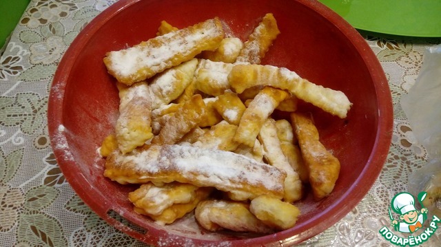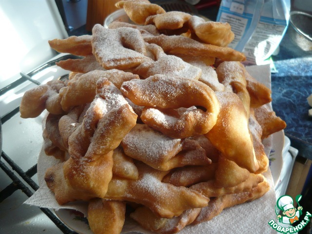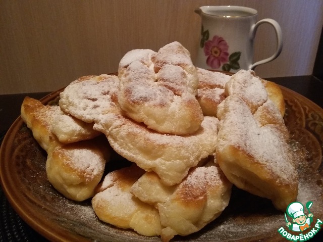 Вкусные и такие ароматные и пушистые булочки. Похожи немного на хворост, но все же не он. Изделия имеют мягкую текстуру и замечательный подъем. Продукты всегда есть под рукой, да и готовить совсем не сложно. Угощайтесь!
