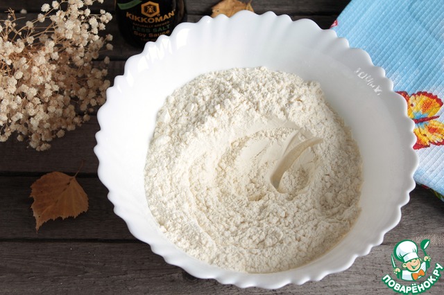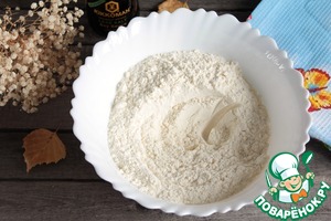 Предварительно просеянную муку пшеничную смешать с сахарным песком и содой.