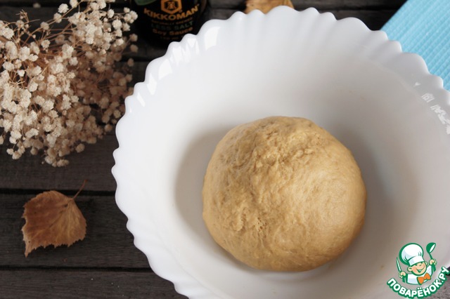 Соединить жидкую смесь с мучной. Замесить тесто, как на пельмени, при необходимости добавить небольшое количество холодной воды или наоборот подсыпать муки. Готовое тесто накрыть полотенцем.