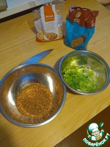 - Крупа гречневая (1/2 от объема гороха) — 100 г