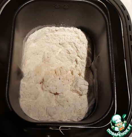 Добавляем муку и соль. Включаем замес. Через 13 мин. тесто готово.