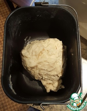 Проверяю замес через 3-5 мин. Если необходимо, деревянной лопаткой тесто снимаю со стенок ХП вниз. Сегодня тесто приготовилось за 10 мин. На фото уже готовое тесто.