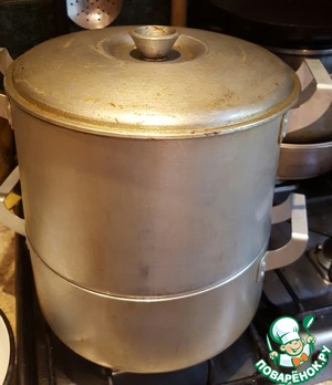 Накрываем крышкой от казана. Готовим 45 мин. на среднем огне.