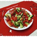 Сразу оговорюсь, что овощи могут быть любого размера, главное, чтобы их соотношение было приблизительно 1:1:1 (помидоры : огурцы : перец болгарский).
