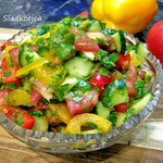 Впервые попробовав этот салат на дне рождения коллеги, была очарована сочетанием свежих овощей и кисло-сладкого вкуса. Несмотря на то, что стол ломился от вкусных блюд, оторваться от этого салата я не могла. Была уверена, что приготовление достаточно сложное, каково же было мое удивление, когда оказалось, что салат на самом деле готовится очень просто и быстро. Приглашаю в гости!
