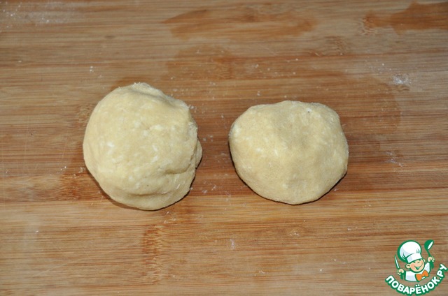 Тесто делим на две части (одна чуть побольше), кладём в пакет и отправляем в холодильник на 30 минут.