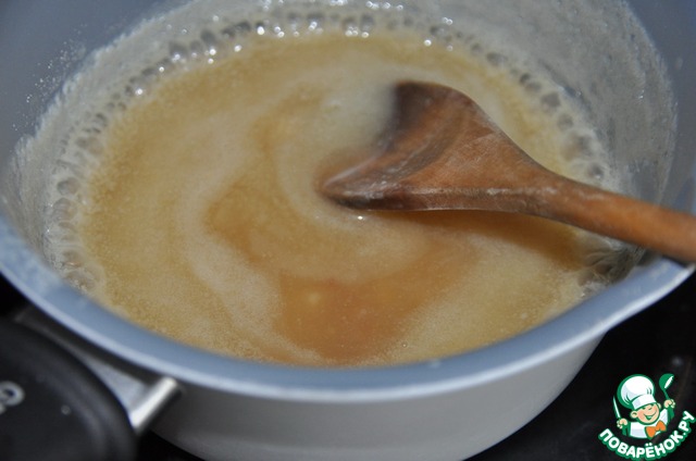 Всё хорошо перемешиваем. Даём карамели немного остыть.