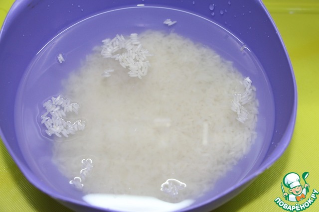 • Замочить рис в холодной воде на 2 часа.